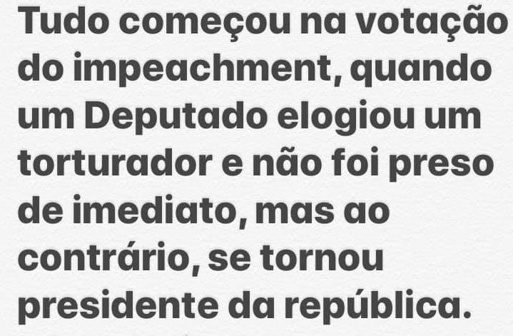 Para Tavares, a tortura da ex-presidente, na sua juventude, assim como a morte da vereadora Marielle Franco, caiu no esquecimento.